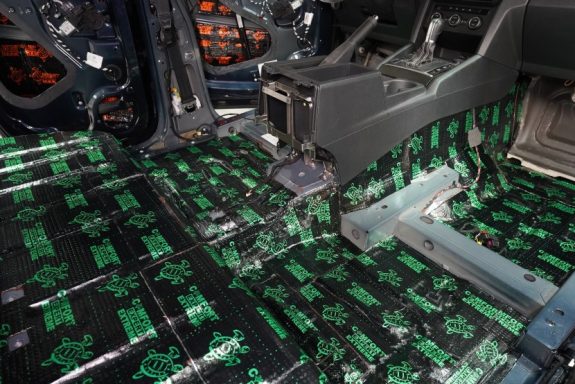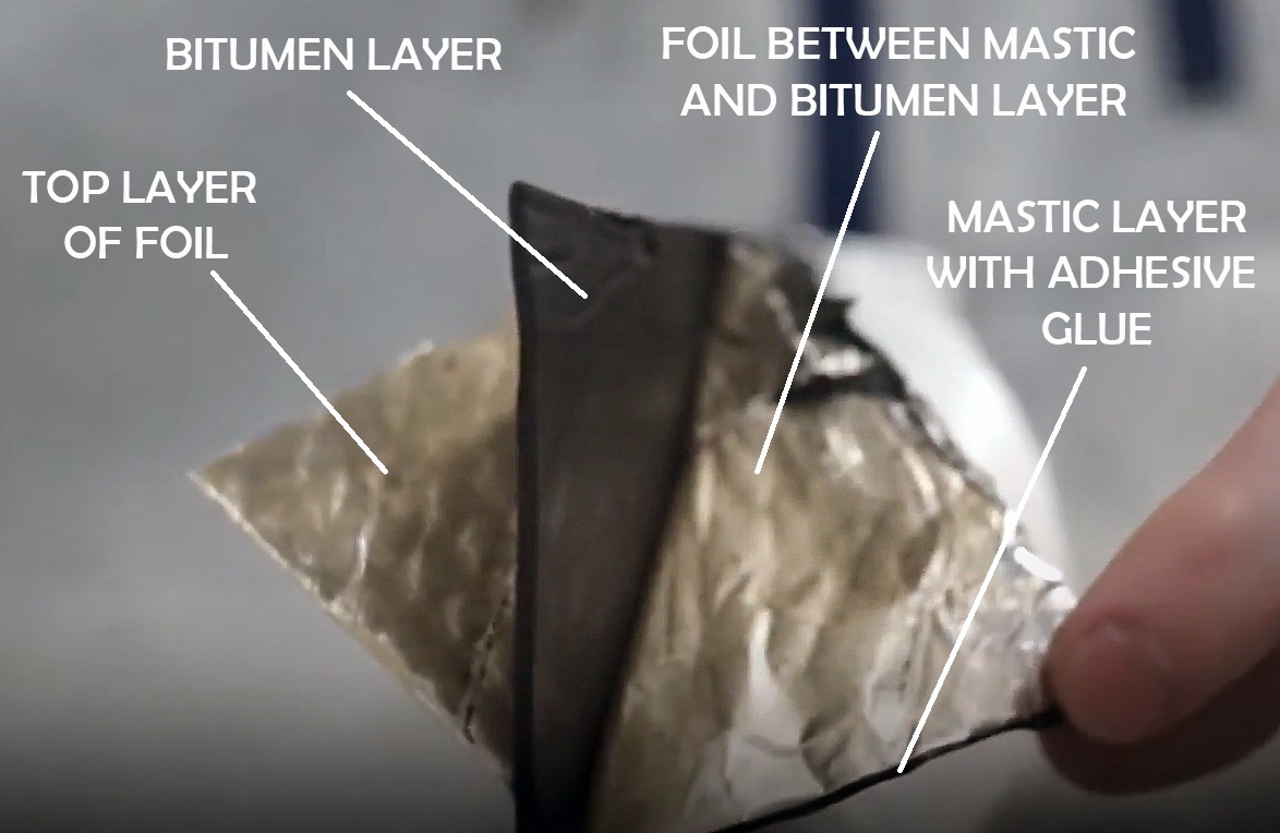 Alubutyl-Bitumen Sandwich, mehrlagige Vibrationsdämpfungsmatte für Bereiche mit starken Vibrationsbelastungen. Universelles, vibrationsdämpfendes Material mit einer Dicke von 3,5mm hat eine sehr gute Haftung auf Metall. Das Material besteht aus einer Mischung spezieller Butyl-Polymere und einer Schicht aus Bitumen, die mit 2 Lagen Aluminiumfolie verstärkt sind. Die Verwendung eines modifizierten Elastomers in der Zusammensetzung der dämpfenden Schicht verleiht dem Material einen hohen mechanischen Verlustfaktor, eine gute Haftung und Beständigkeit gegen Umwelteinflüsse. Die Matten der EXTREME-Serie sind wasserbeständig, sie haben Dichtungs- und Korrosionsschutzeigenschaften. Sie müssen während der Installation erwärmt werden!