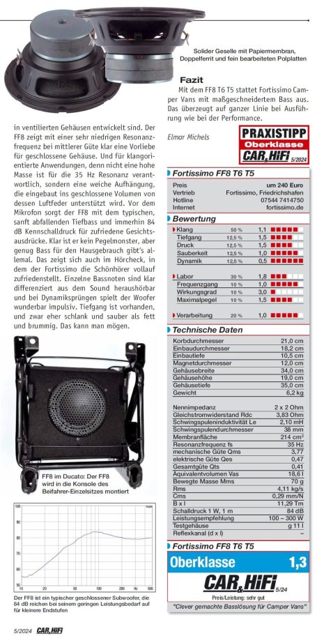 Fortissimo 8" 200mm Subwoofer 2+2 und 4+4 Ohm